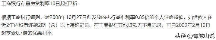 看,2009年初對存量房貸0.85倍折扣0.7倍,因為2009年之前的大多數買家都享受基準利率.85倍的貸款。