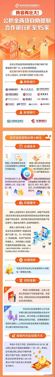 青島公積金商業(yè)貸款自助提取業(yè)務銀行擴大到15家!