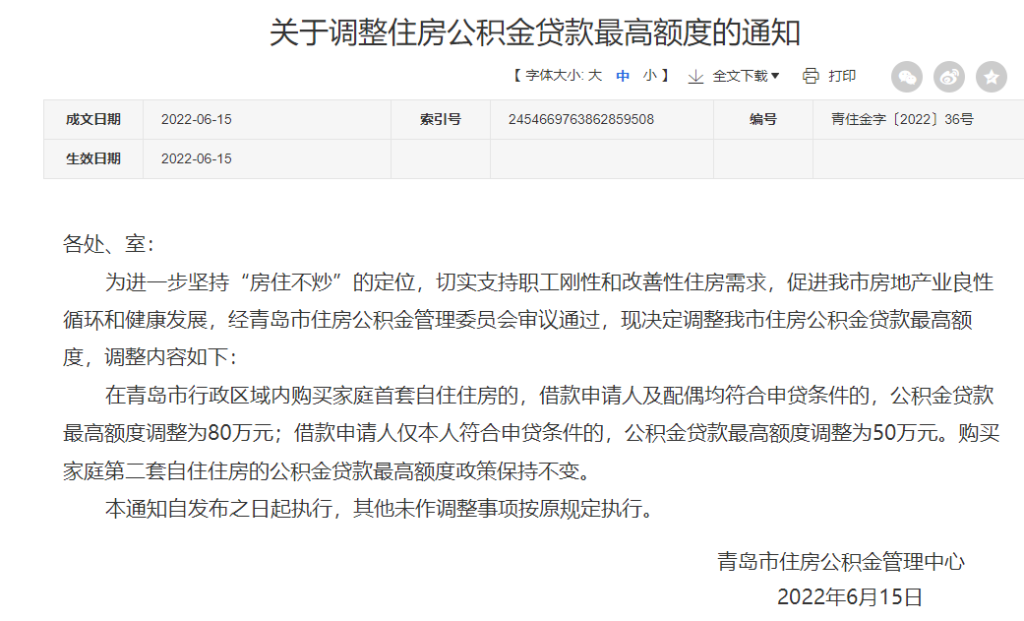 代提!!80萬元!青島調整住房公積金貸款最高額度