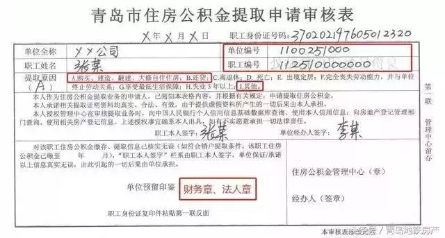 5.到公積金中心填寫青島市住房公積金中心提取申請審核表,經辦人需準備員工編號和單位編號。