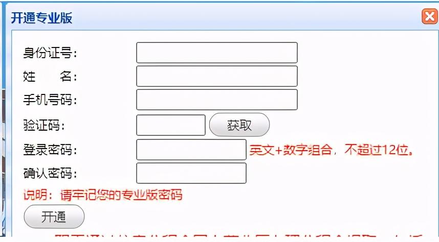2.輸入身份信息和密碼(不超過12位):