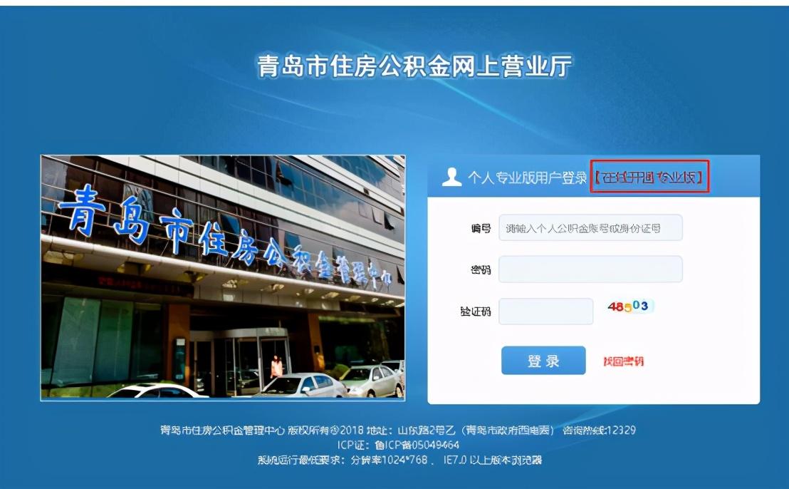 首先打開青島住房公積金網(wǎng)站(http://www.qdgjj.com),找個人網(wǎng)上營業(yè)廳-個人專業(yè)版登錄(下圖界面)